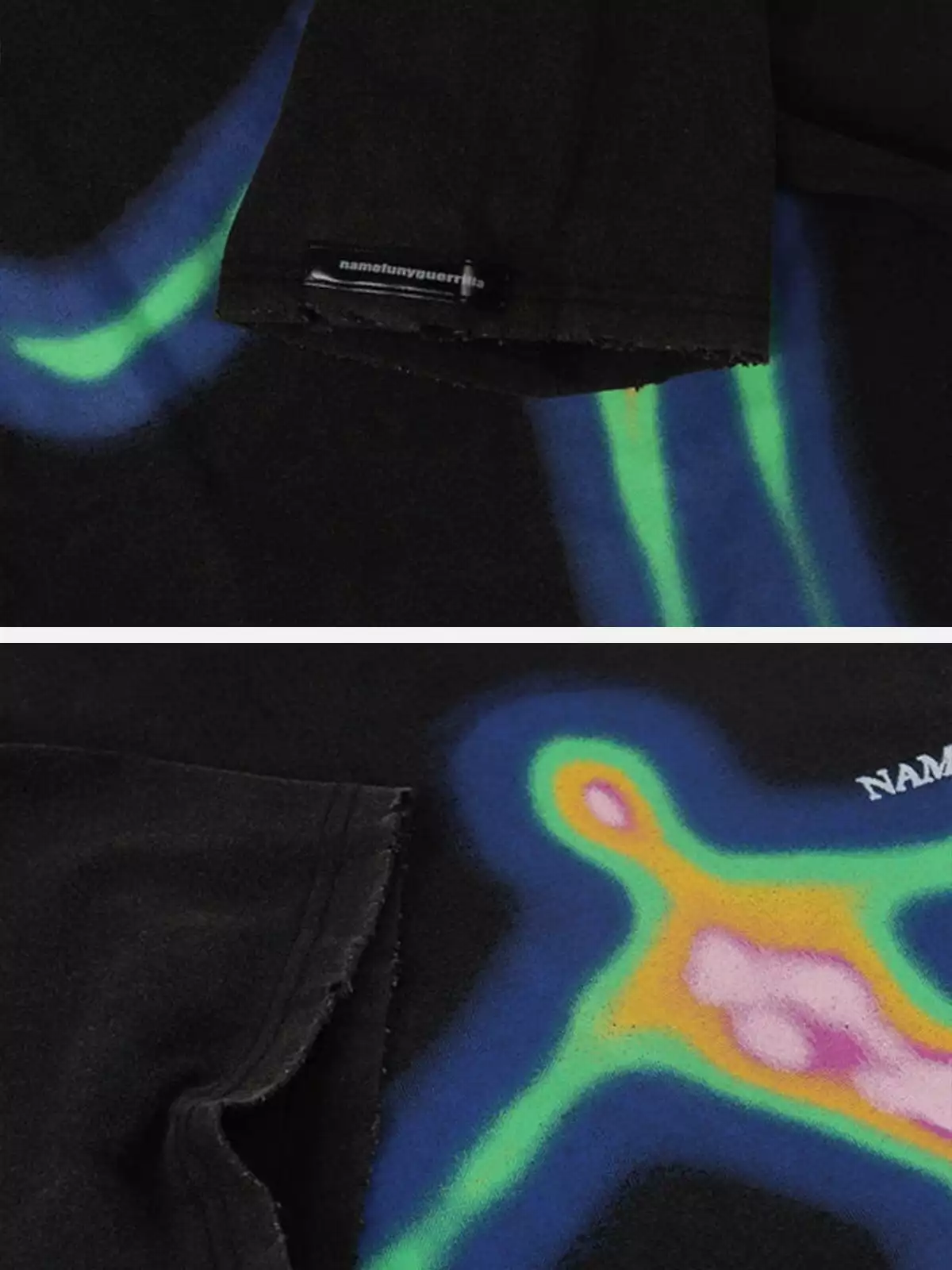 - Clothing details: Oversize style, Distorted Portrait Print.