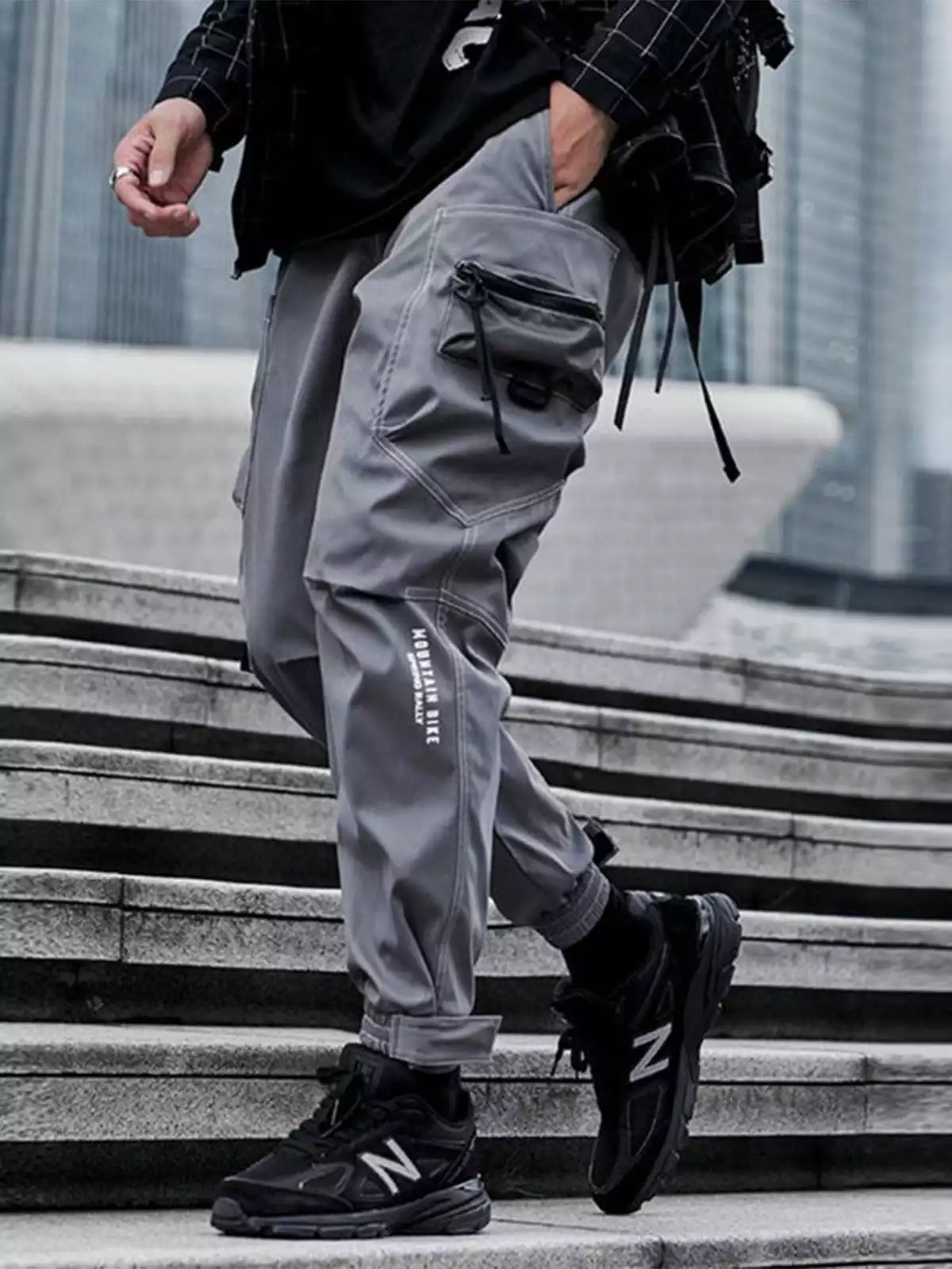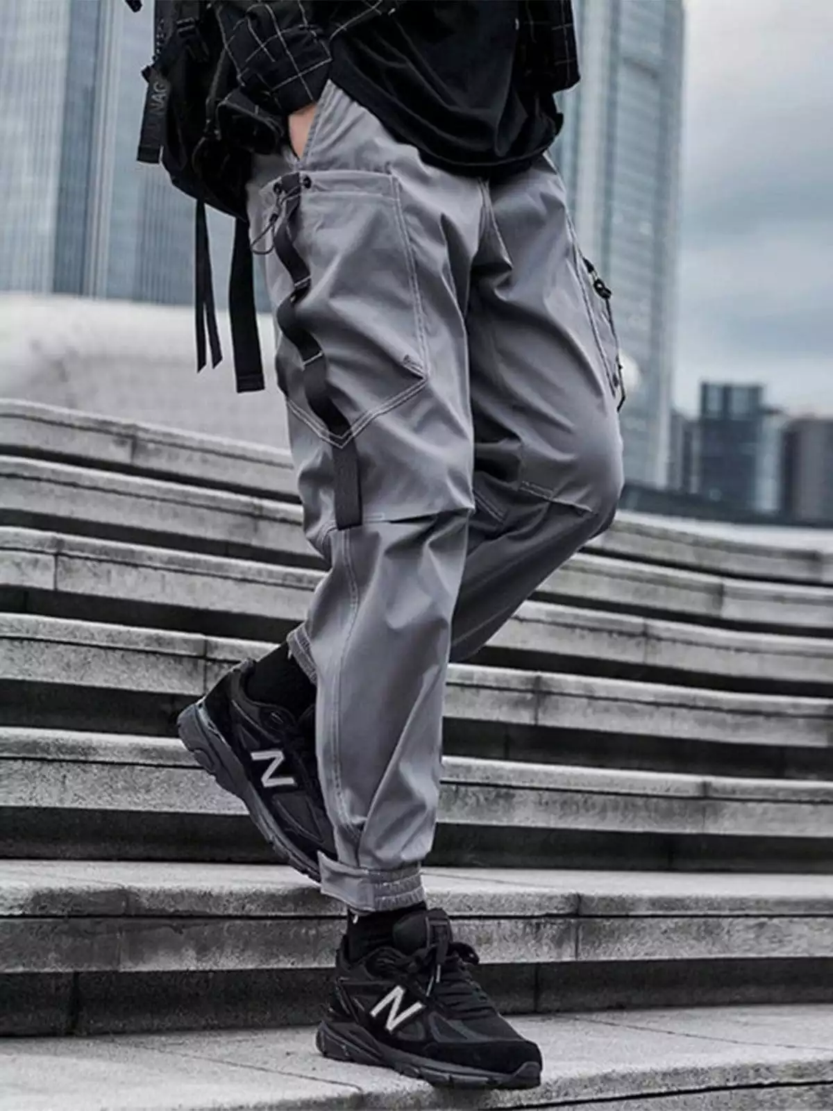 - Original designer: Spring and autumn European and American joggers trousers national trendy bright line zipper pockets pants.