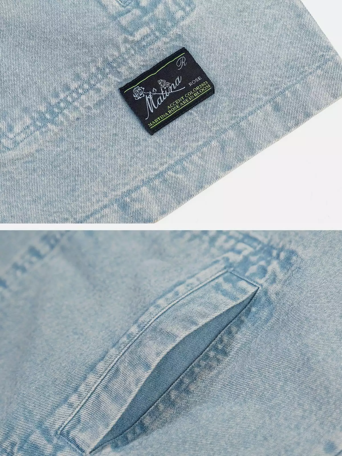- Clothing details: Washed Denim.