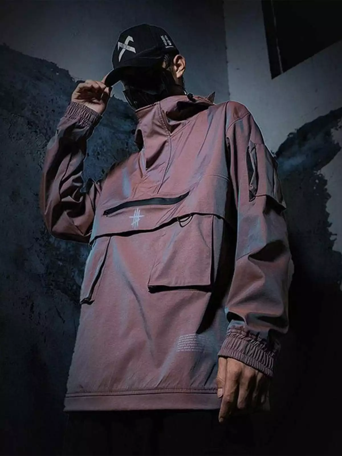 - Original designer: Reflective jacket tooling jacket men’s autumn tide brand functional wind hooded half zipper jacket.