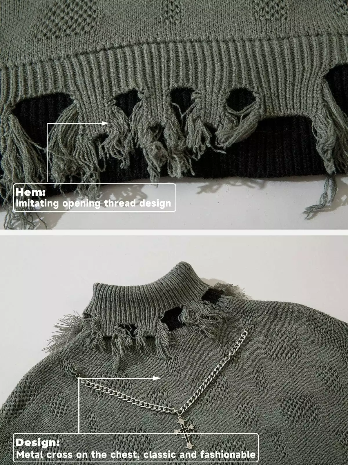 - Clothing details: Cross Necklace.